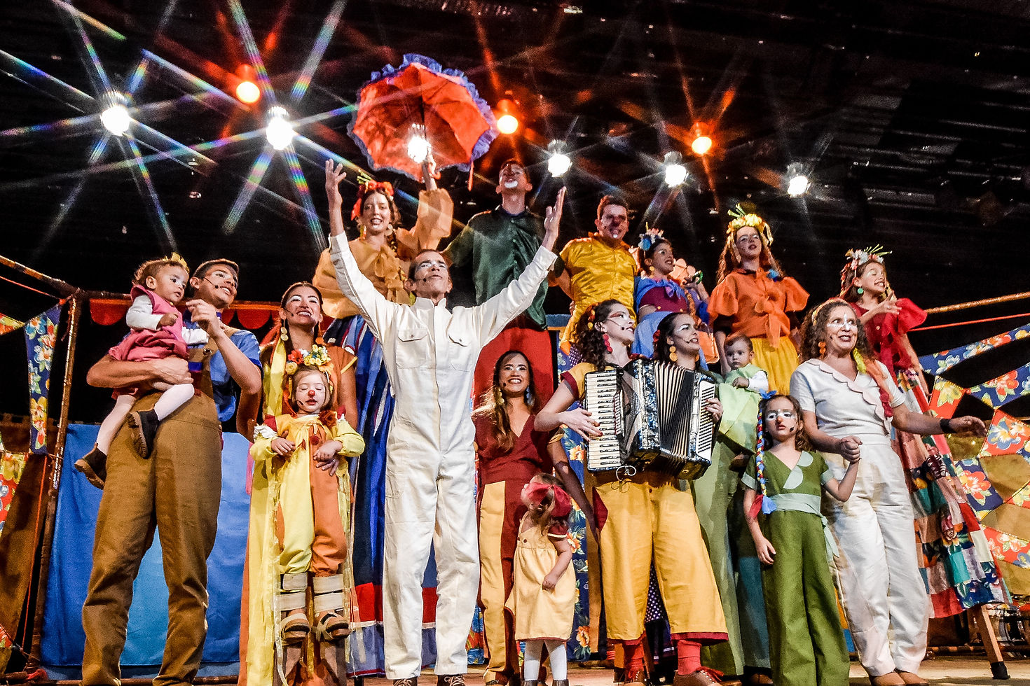 A montagem é um marco celebrativo de meio século de trajetória de uma das companhias mais longevas do país. No palco, a memória se transforma em movimento com um elenco que personifica a história do grupo: são três gerações da família Gomide-França atuando juntas, com integrantes com idade entre 6 meses e 70 anos de idade. O espetáculo respira a tradição saltimbanca, transformando o tempo em uma celebração da arte brincante que une teatro, circo, música e bonecos.